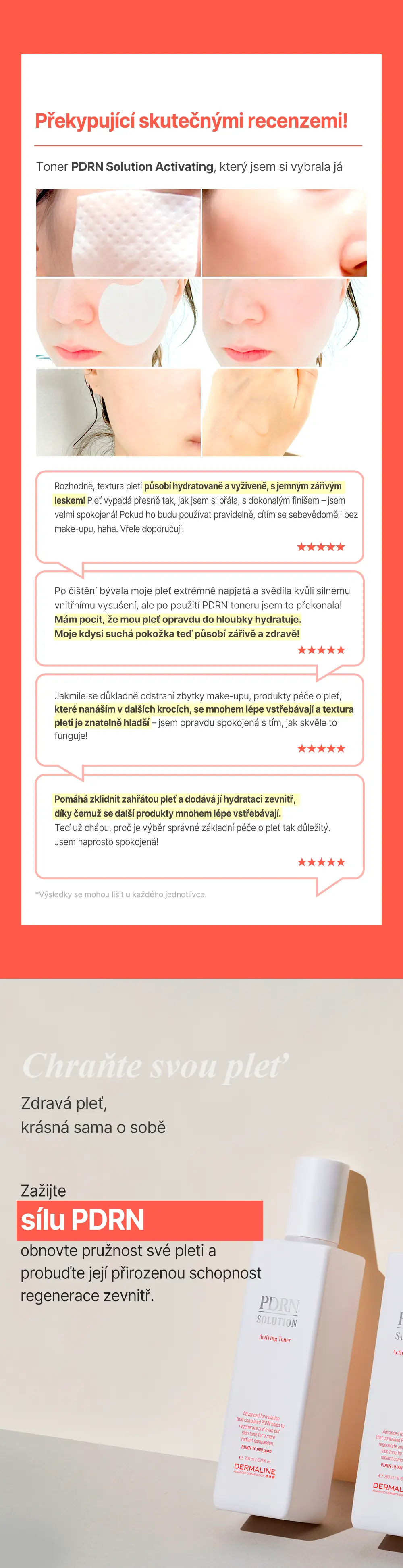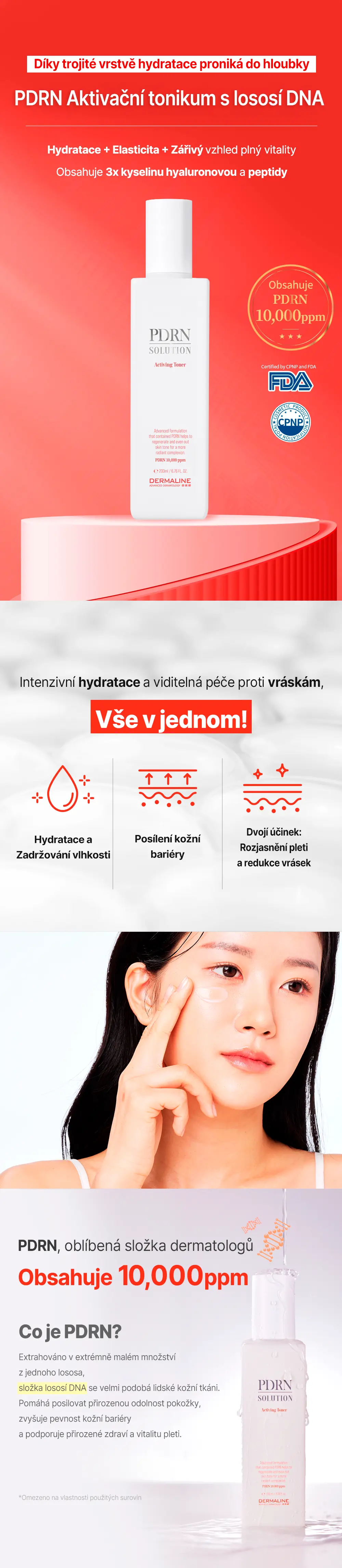 Ověřeno dermatology, nyní dostupné i pro domácí péči. Díky 10 000 ppm PDRN z lososa a trojité kyselině hyaluronové okamžitě hydratuje od hloubky až po povrch, posiluje kožní bariéru a vyhlazuje jemné vrásky. Peptidový komplex podporuje obnovu buněk a elasticitu pleti, zatímco extrakt z pupečníku asijského zklidňuje citlivou pokožku. Ideální první krok denní i speciální rutiny pro zářivou, pružnou a vyživenou pleť.
